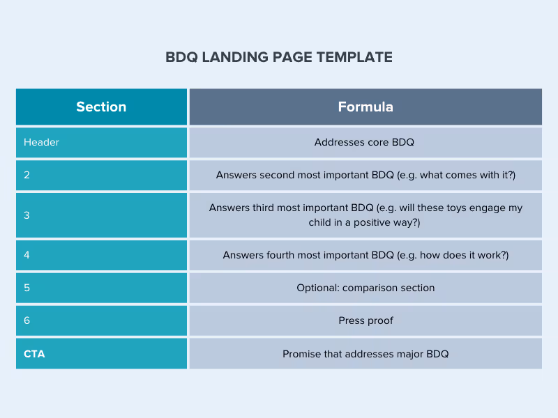 This is where persona-centric BDQs come in. Organize your BDQs by priority and ensure the answers to your buyers’ most critical questions are easy to find in your ads and on your landing page.