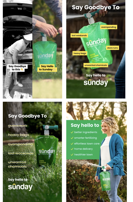 For example, imagine a jewelry brand. Instead of testing small tweaks of the same image, you could compare a testimonial, a trend or even a simple grid of images. Yes, the main picture is still the same, but the concept around changes. And that’s what really helps you to determine a winner.